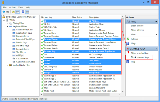 新推出的WE8S,不僅將Keyboard Filter整合至Embedded Lockdown Manager(ELM)中,並且也讓開發人員,能夠在ICE中,設定要block的組合