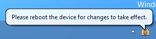 - 在Desktop mode下,右下角狀態列會秀出”Please reboot device for changes to take effect”