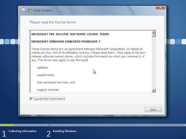 基本上WindowsR Embedded POSReady 7的安裝過程,與Windows 7幾乎是一樣的,有用過WindowsR Embedded Standard 7的朋友都知道,若是完全手動透過IBW安裝的話,中間會有許多Feature Pack和Driver要選取,選完後還要調整相依性,過程算是麻煩許多,以下先分享安裝過程的圖片
