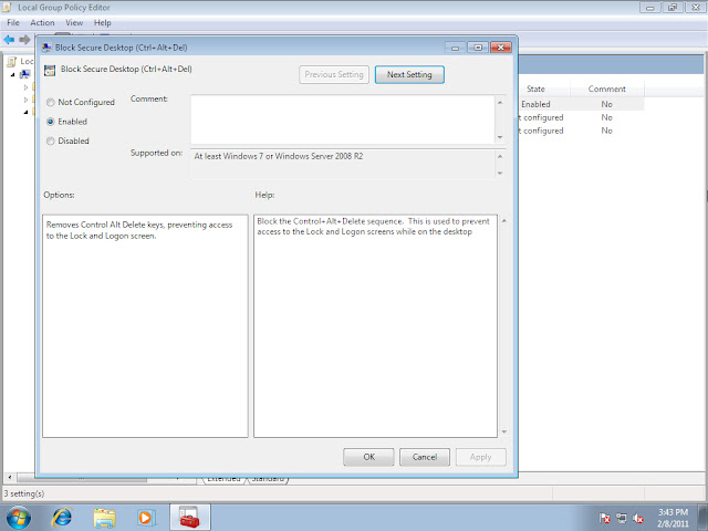 然後把選項設定為Enabled就可以了,這樣子不管怎麼按Ctrl + Alt + Del,都不會跑任何程式或動作了